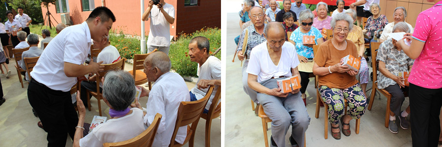 2016年8月9日山東希爾福生物科技有限公司健康公益行活動(dòng)小組走進(jìn)兗州區(qū)社會(huì)福服務(wù)中心,為110余位老人免費(fèi)發(fā)放營養(yǎng)素補(bǔ)充劑。